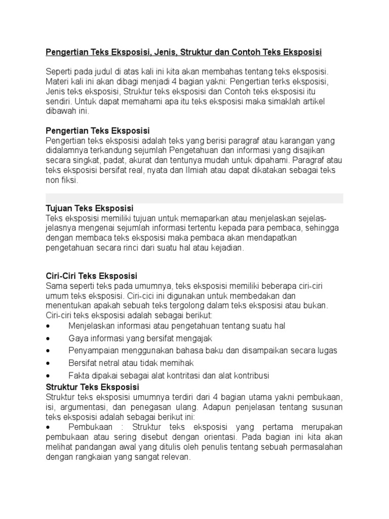 Contoh Teks Eksposisi Pengertian Ciri Tujuan Struktur